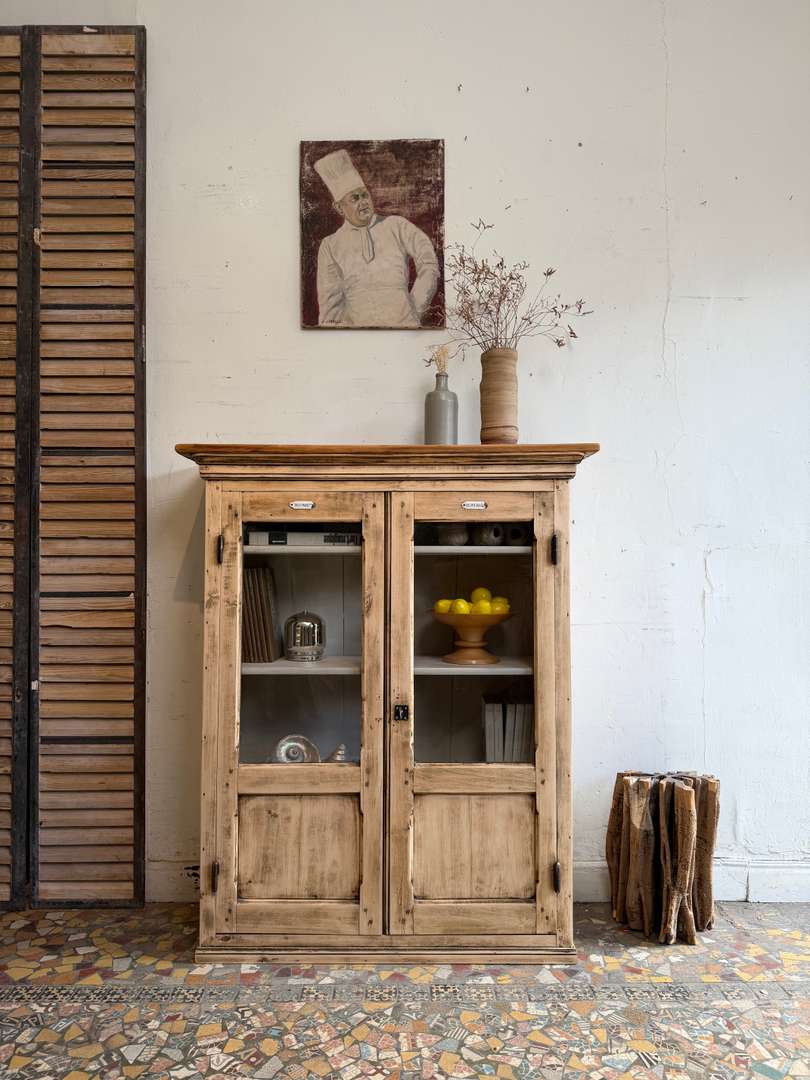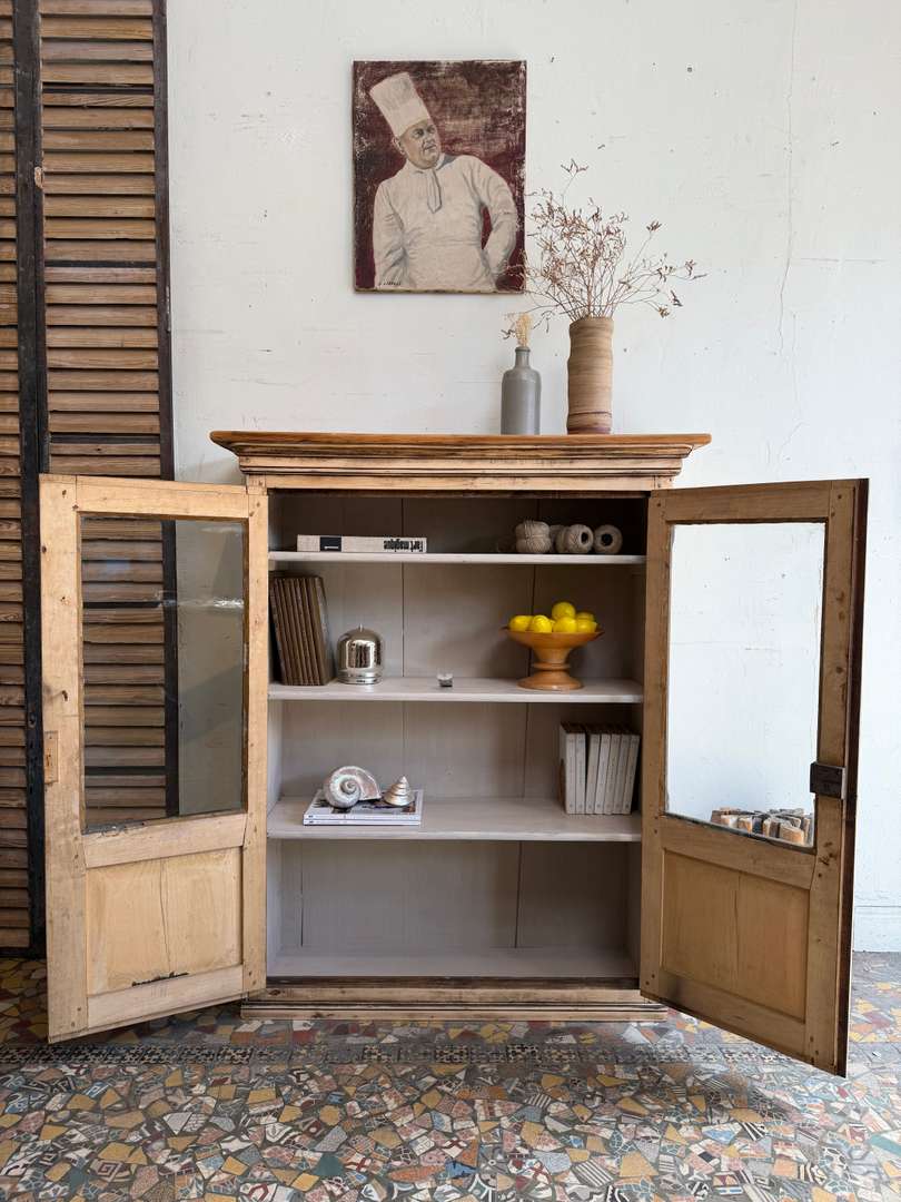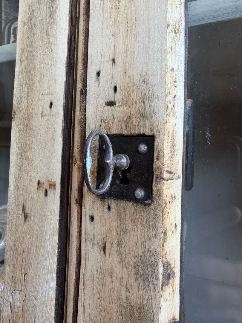 Elle ouvre par deux portes vitrées et ferme à clé. L’intérieur est peint en gris taupe.