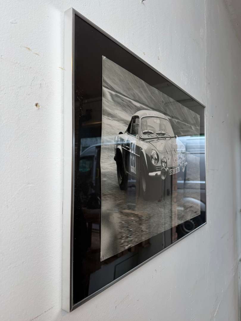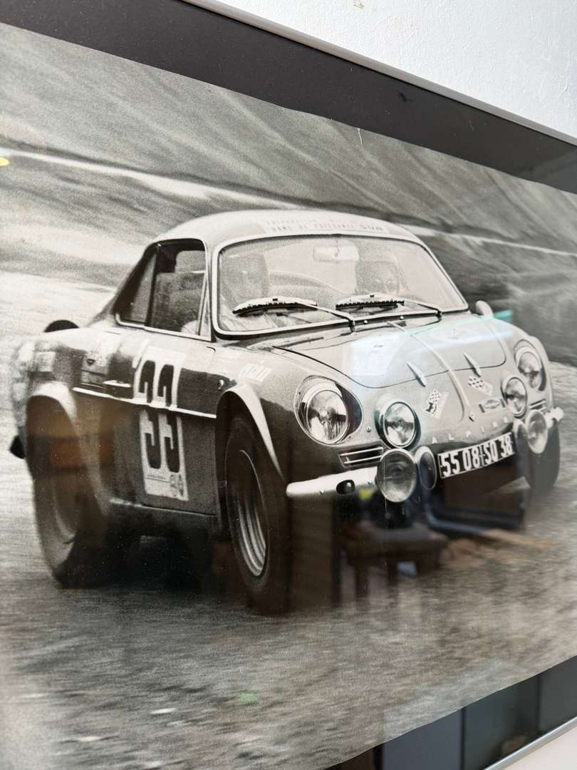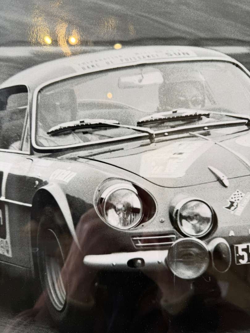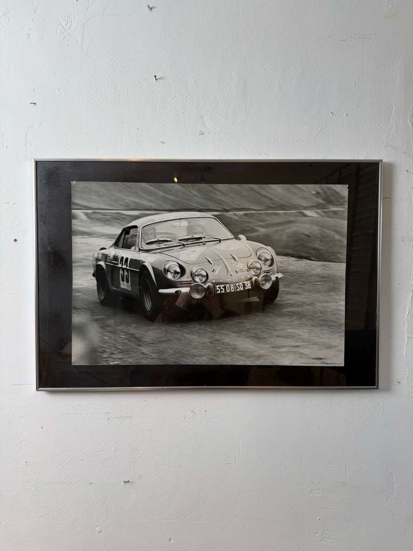 Photographie en noir et blanc représentant une Alpine Renault en course, lors de la Coupe des Alpes 1969. Tirage des années 90, imprimé en France, encadré sous verre. Bel objet décoratif pour les amateurs d’automobile et d’univers vintage.