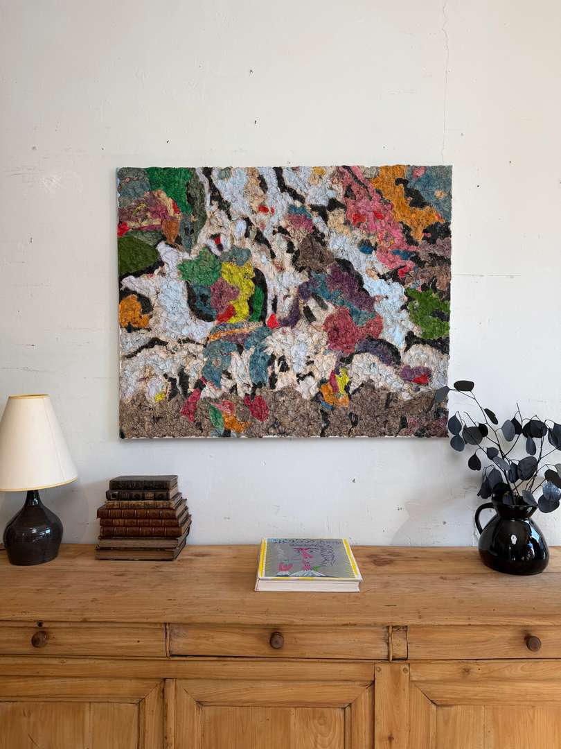 Composition en papier mâché et acrylique, signée Pierre Olivier. Peintre lillois, membre du groupe de l’Atelier de la Monnaie à Lille.