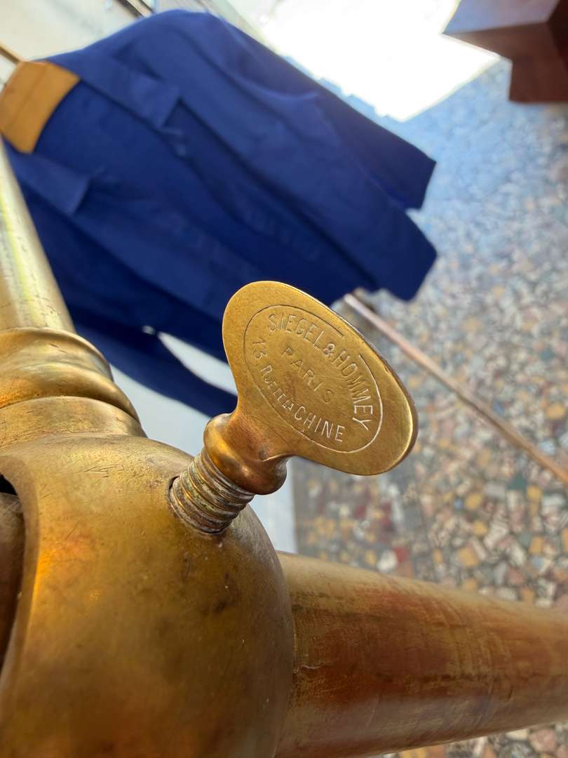 Barre modulable en hauteur avec système de serrage d’époque estampillé « Siegel & Hommey – Paris ».