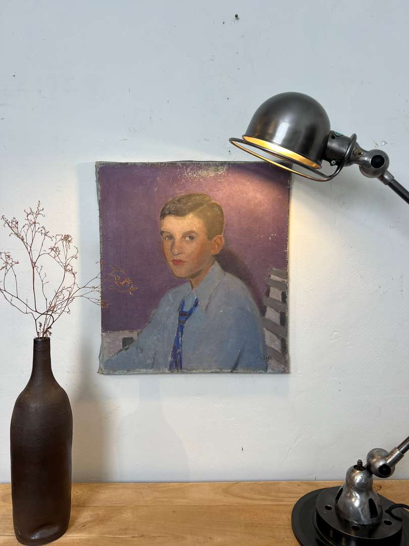 Portrait d’enfant, années 50 200 €Livraison france offerte Ajouter au panierAncien portrait d’un jeune garçon des années 50, peint sur toile. Jolis tons violets et bleus et belle expression du visage. Une pièce décorative pleine de charme. #portrait #vintage #annees50DimensionsLargeur45.5 cmProfondeur2 cmHauteur50 cmRenseignementsRéférence2549003