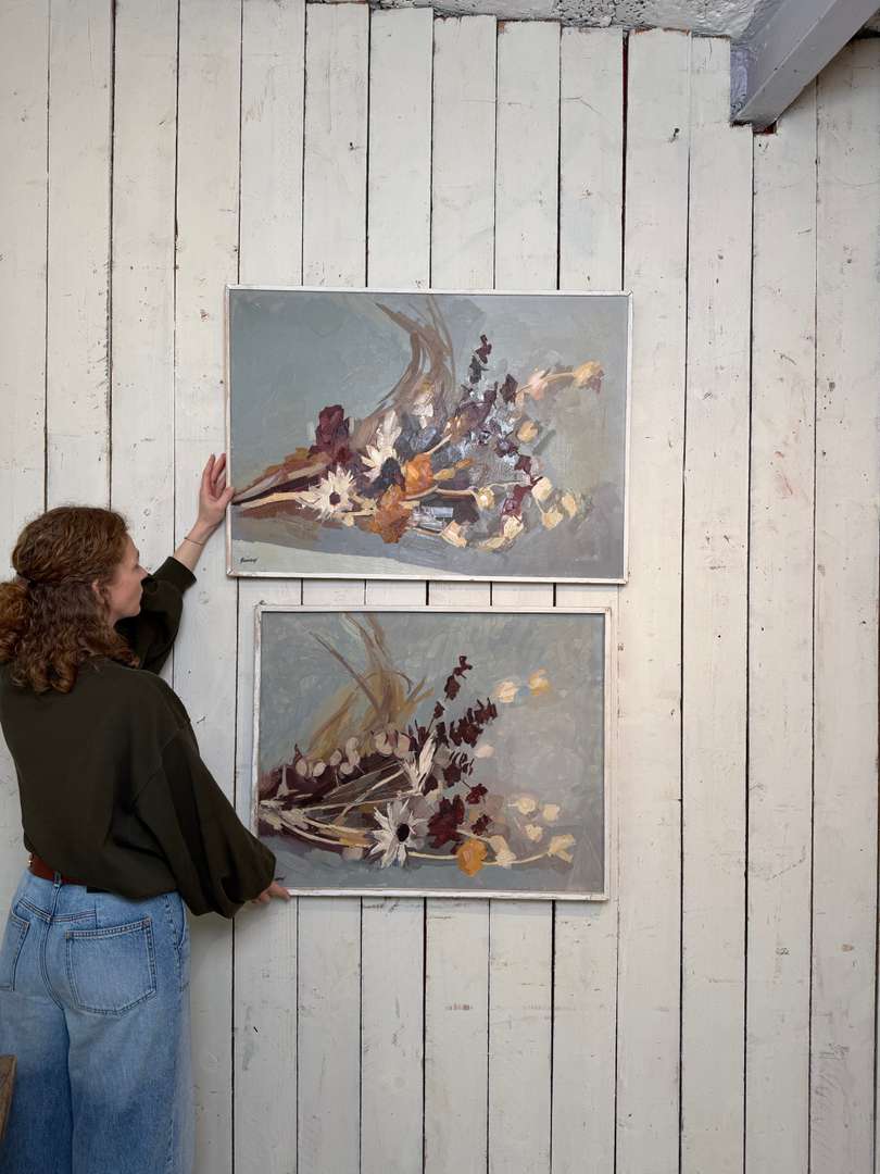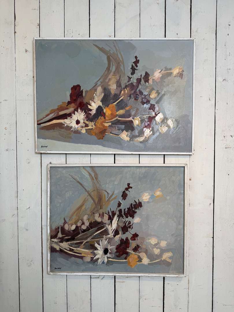 Bouquets de fleurs traités en touches libres, dans une palette douce et nuancée.