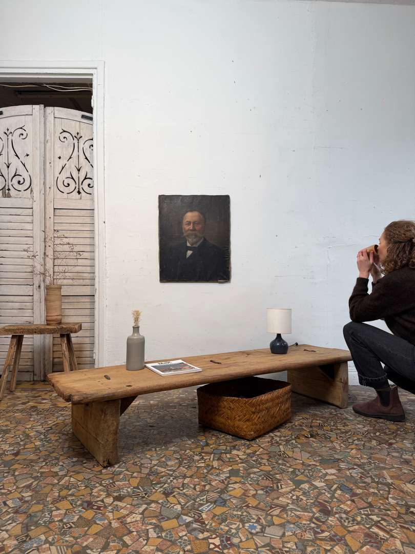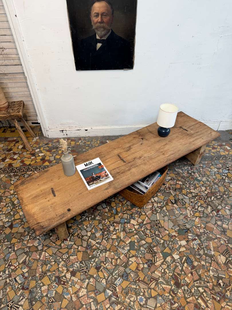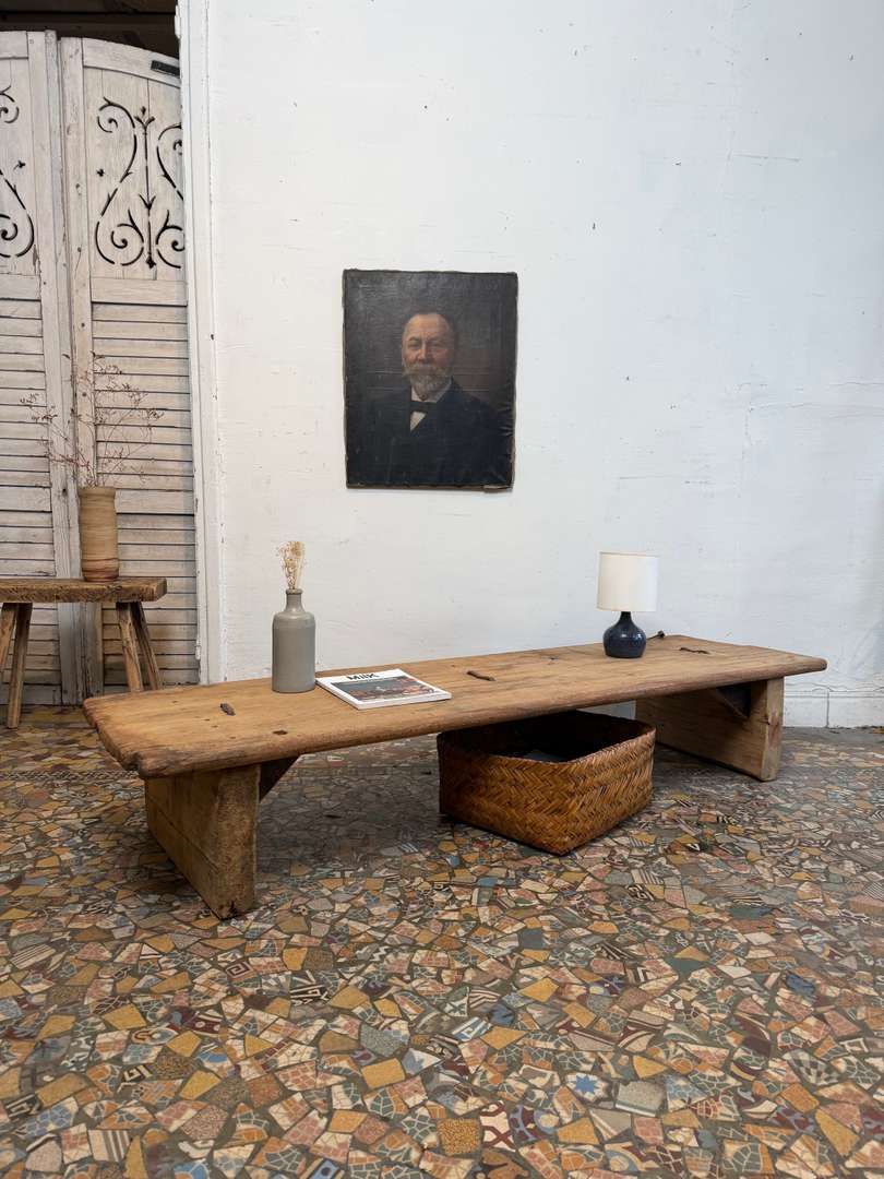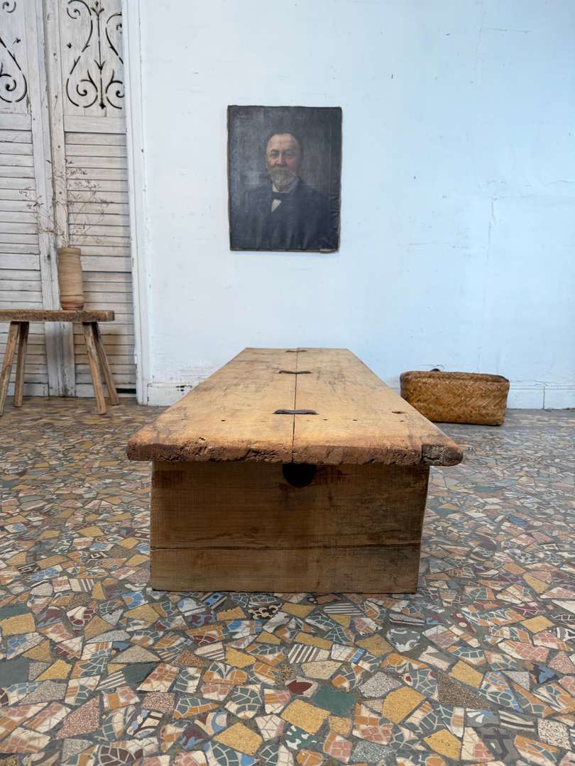 Table basse esprit japonais 550 € Ajouter au panierTable basse au style japonais, plateau marqué d’agrafes en métal. Peut aussi servir de console basse ou de meuble d’entrée. #tablebasse #espritjaponais #mobilierancien #wabisabi #brocanteDimensionsLargeur175 cmProfondeur48 cmHauteur30 cmRenseignementsRéférence2602002