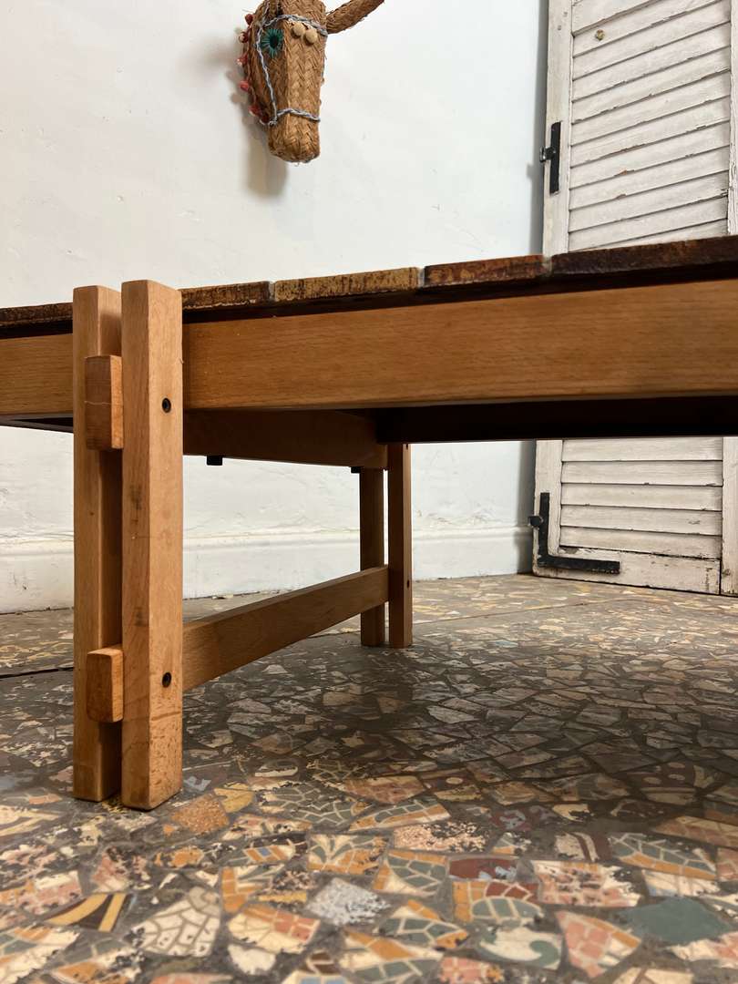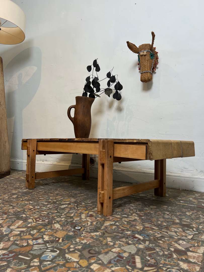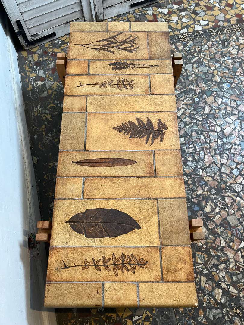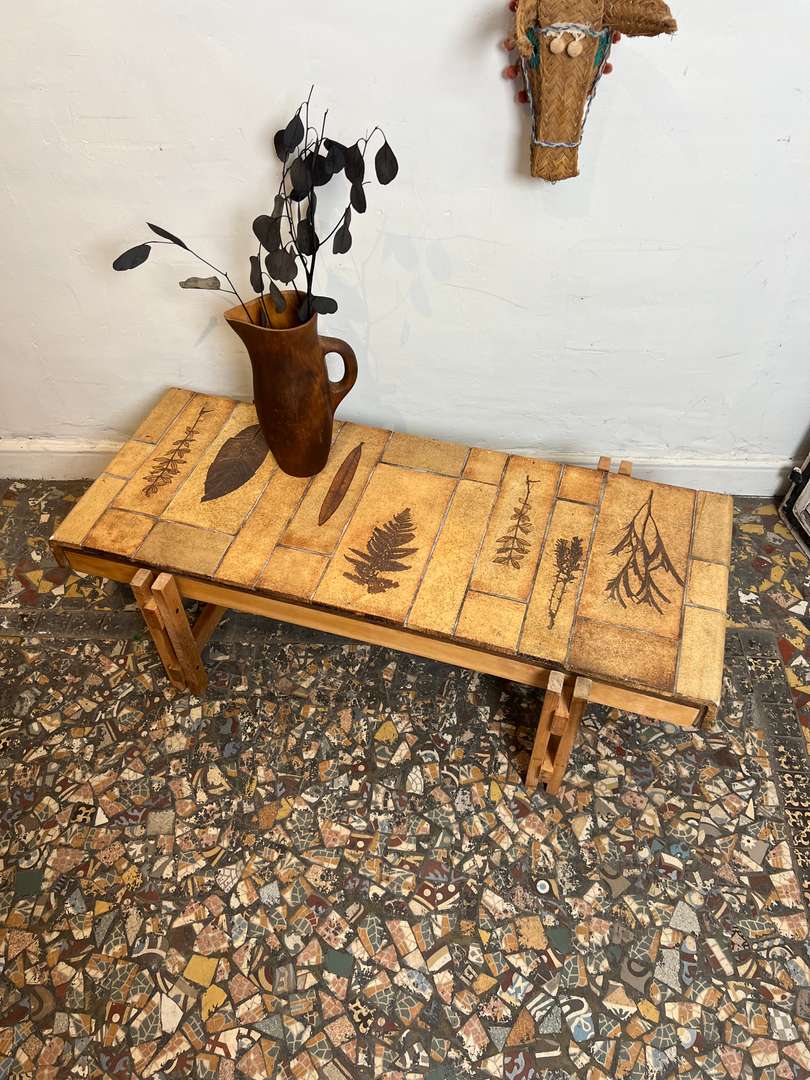 Table basse Roger Capron – années 50/60 600 € Ajouter au panierPlateau en céramique décor botanique, typique du travail de Vallauris, reposant sur un piétement en bois massif. Une pièce iconique du design français, à la fois graphique et chaleureuse. #rogercapron #vallauris #designvintageDimensionsLargeur117 cmProfondeur56 cmHauteur35 cmRenseignementsRéférence2551002