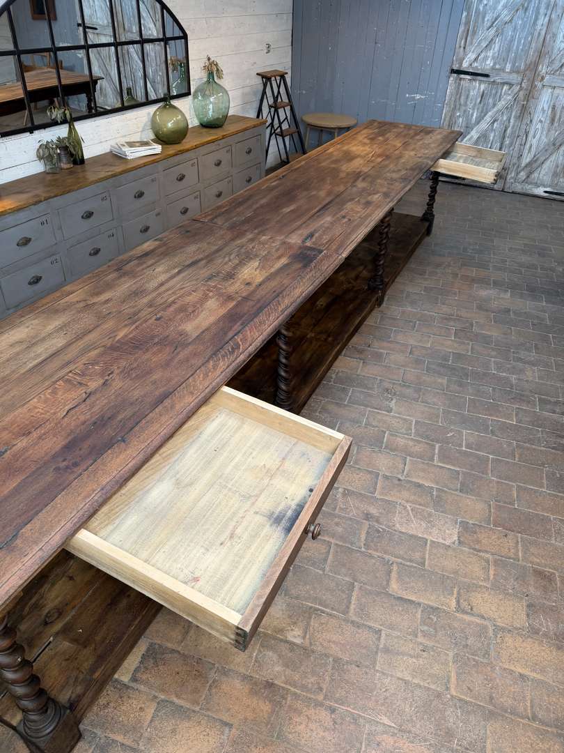 Grande table de drapier en chêne, XIXe siècle.