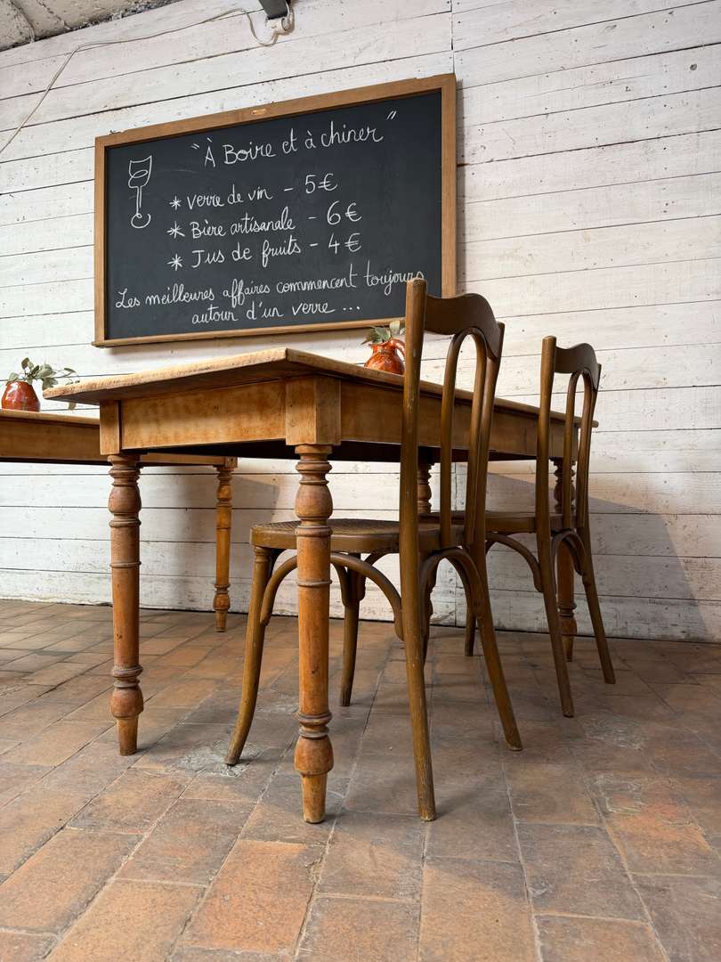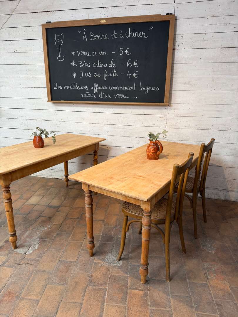 Table d’estaminet en hêtre 350 € Ajouter au panierAncienne table d’estaminet en hêtre. Vendue à l’unité. Plateau en bois brut, belle patine. Pour 4 à 6 personnes. CELLE DE DROITE EST VENDUE - #tableancienne #estaminet #meubledemetier #tablebois #boisbrut DimensionsLargeur150 cmProfondeur65 cmHauteur75 cmHauteur dessous bandeau62 cmRenseignementsRéférence2617017