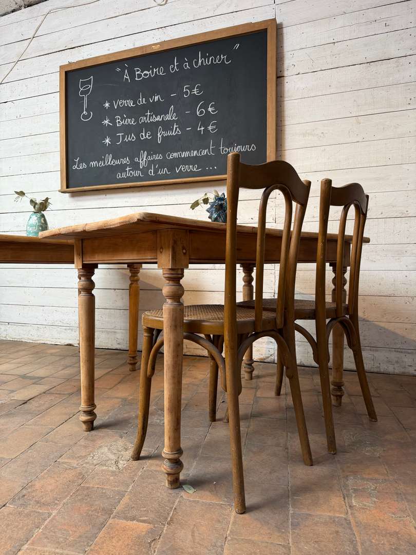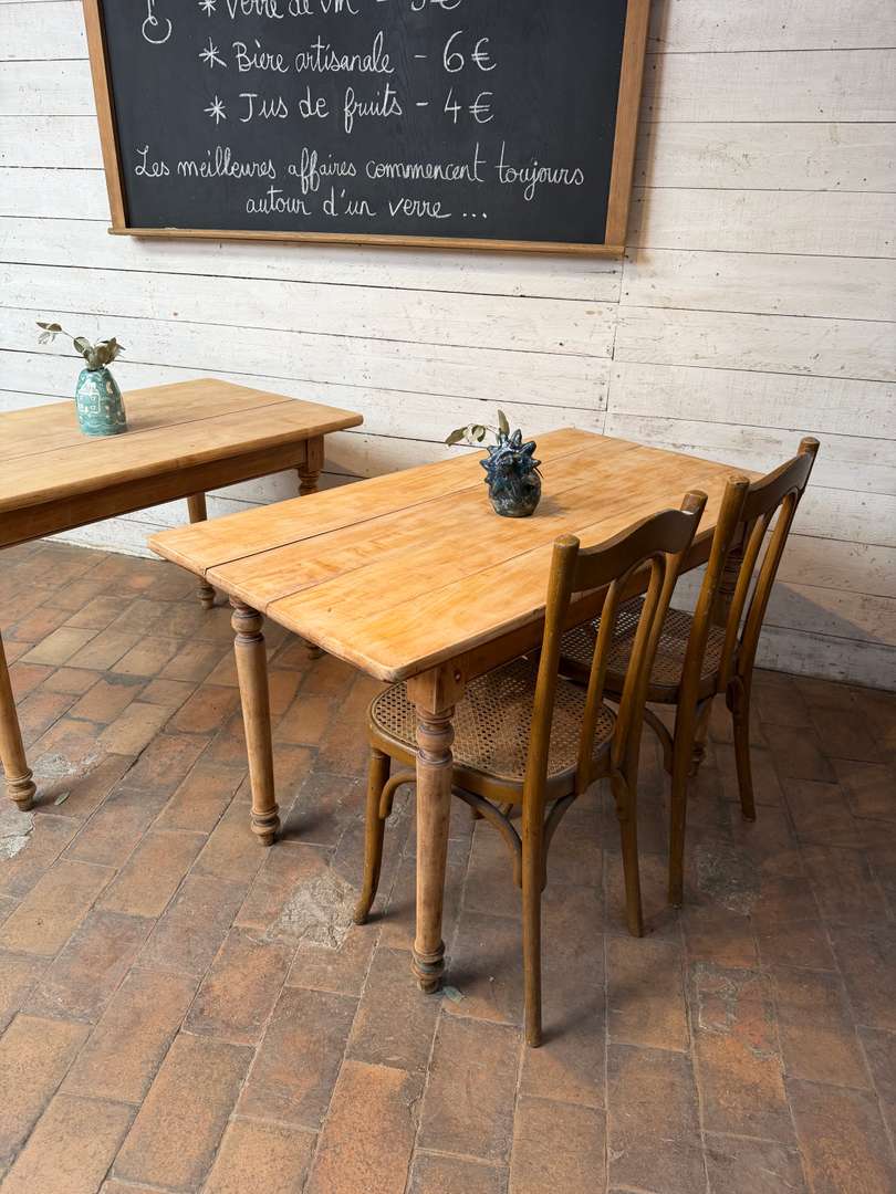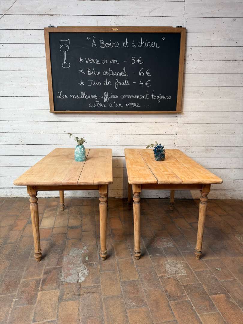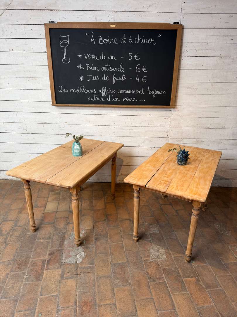 Table d’estaminet en hêtre 280 € Ajouter au panierAncienne table d’estaminet en hêtre. Plateau en bois brut, jolie patine. Pieds tournés. Vendue à l’unité. Parfaite pour un restaurant ou une cuisine. CELLE DE GAUCHE EST VENDUE - #tableancienne #estaminet #meubledemetier #tablebois #boisbrut DimensionsLargeur124 cmProfondeur67 cmHauteur75 cmHauteur dessous bandeau62 cmRenseignementsRéférence2617018