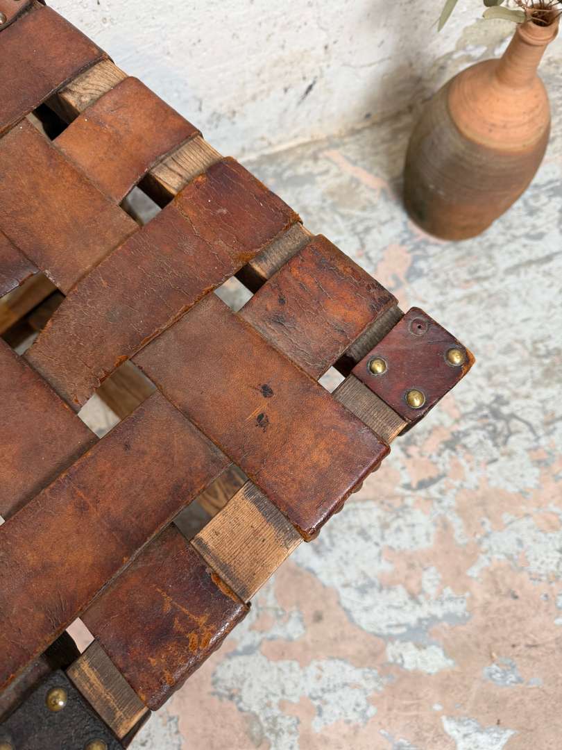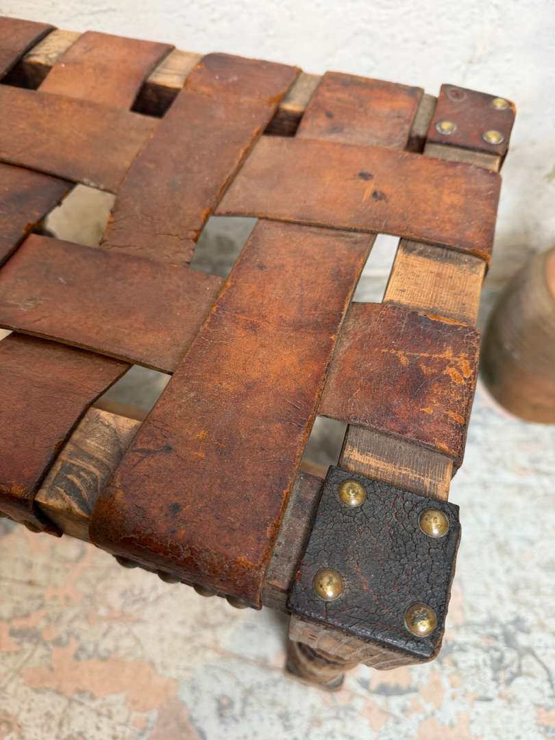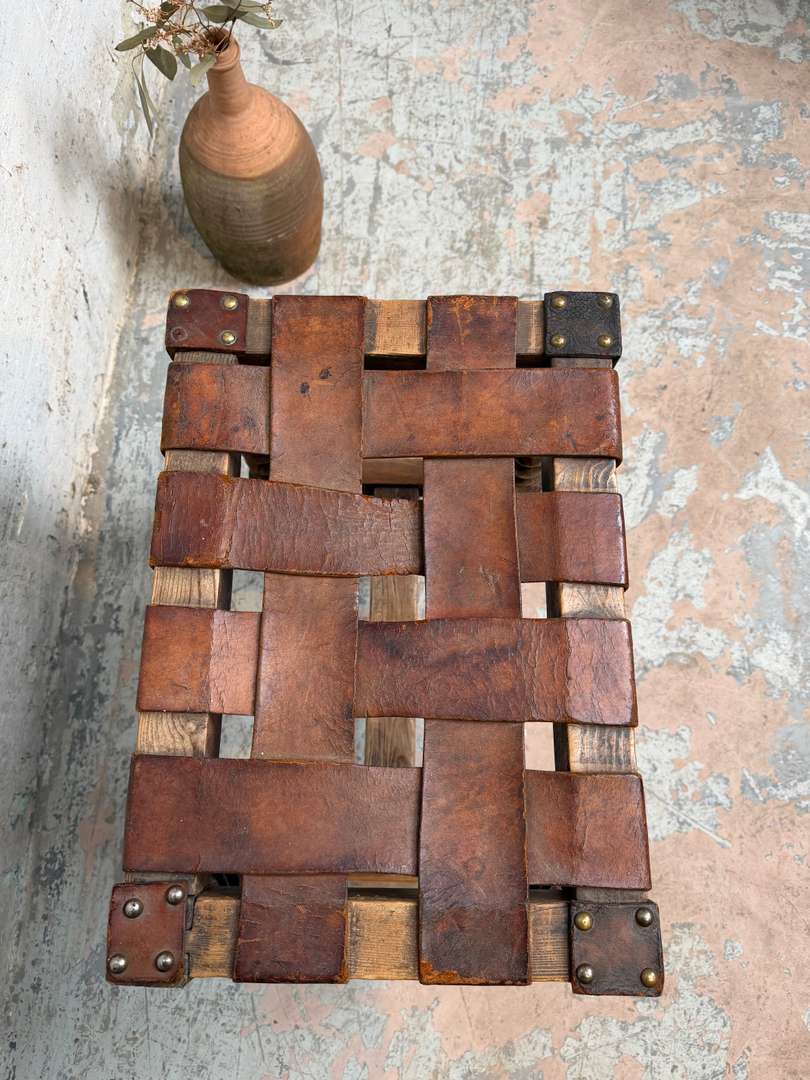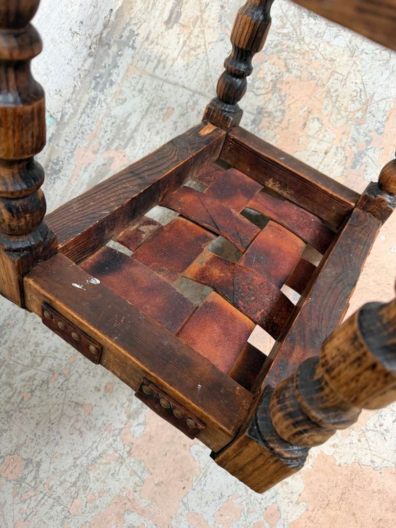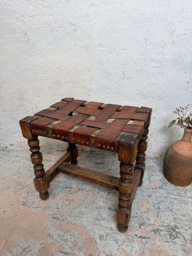 Tabouret anglais en cuir & bois 220 €Livraison france offerte Ajouter au panierBeau tabouret anglais du XXe siècle, en bois massif avec assise en lanières de cuir tressées. Jolis pieds torsadés, parfait en assise d’appoint, bout de canapé ou dans une entrée. #tabouretancien #mobilieranglais #decoauthentiqueDimensionsLargeur43 cmProfondeur30 cmHauteur41 cmRenseignementsRéférence2604009