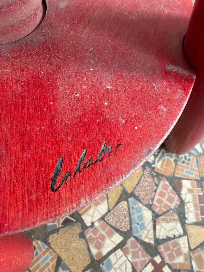Tabouret d’atelier rouge signé 180 €Livraison france offerte Ajouter au panierAncien tabouret d’atelier à vis, en bois peint rouge, avec une belle patine d’usage. Hauteur réglable et stable. Une pièce forte, aussi déco que fonctionnelle. #tabouretatelier #mobilierancien #objetdecaractereDimensionsLargeur32 cmProfondeur32 cmHauteur60 cmDiamètre de l'assise29 cmHauteur maximale76 cmRenseignementsRéférence2604013