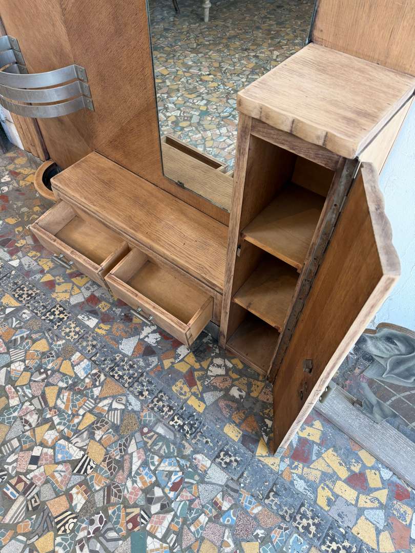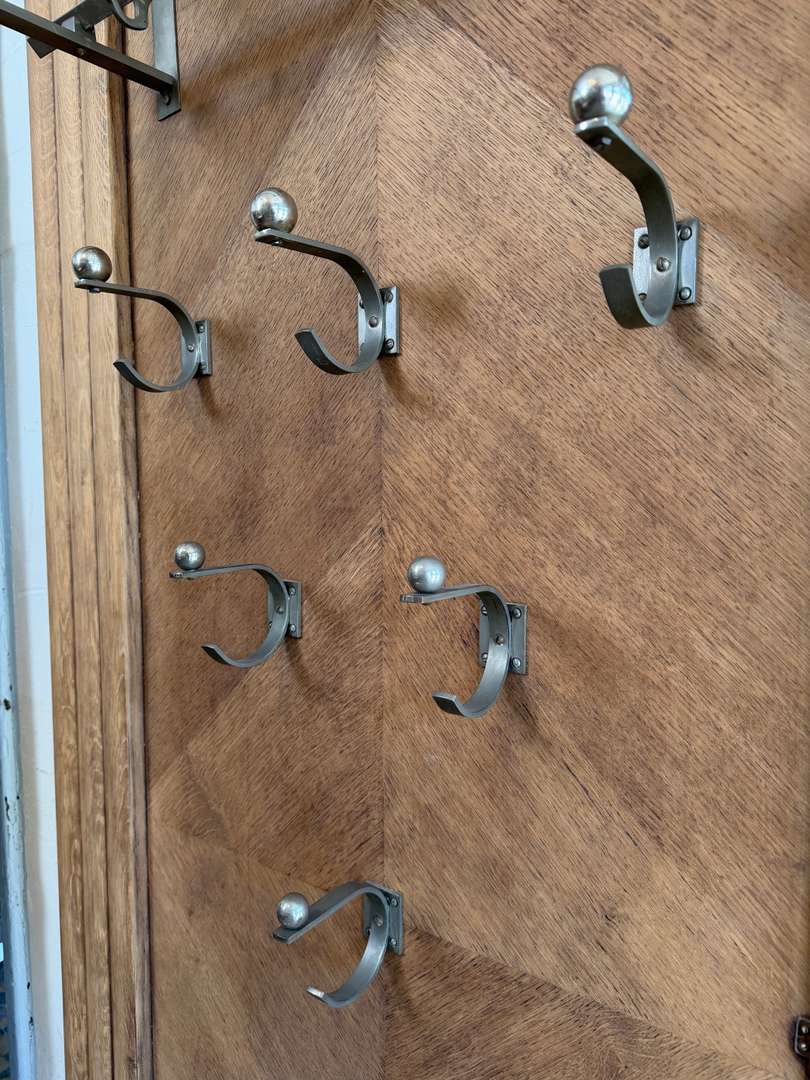 Ancien vestiaire d’entrée Art Déco en chêne brut.