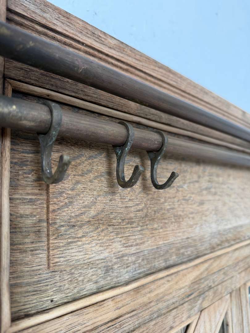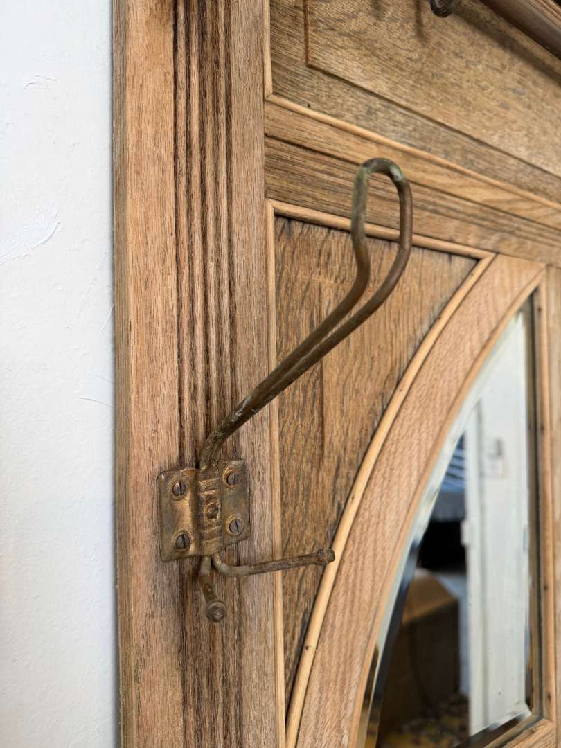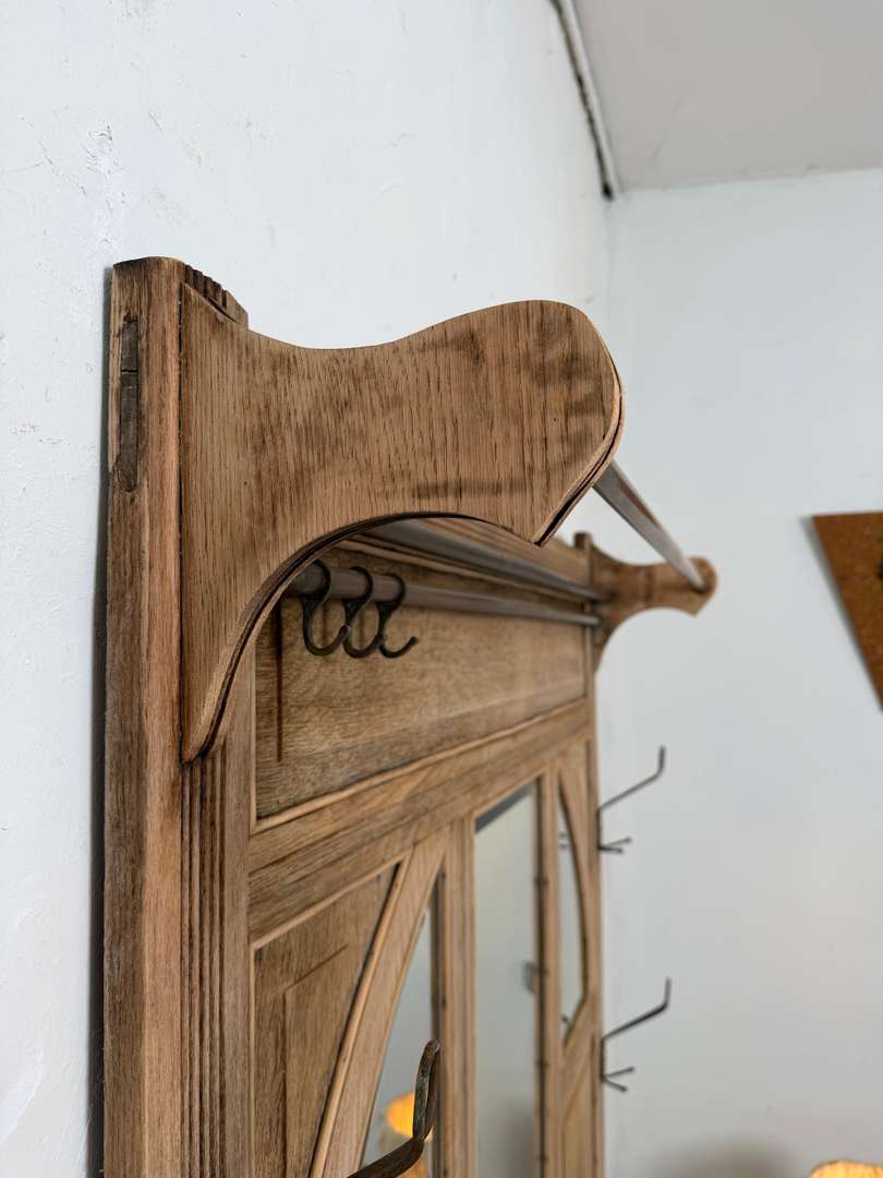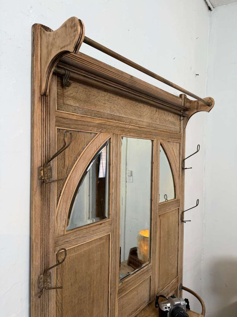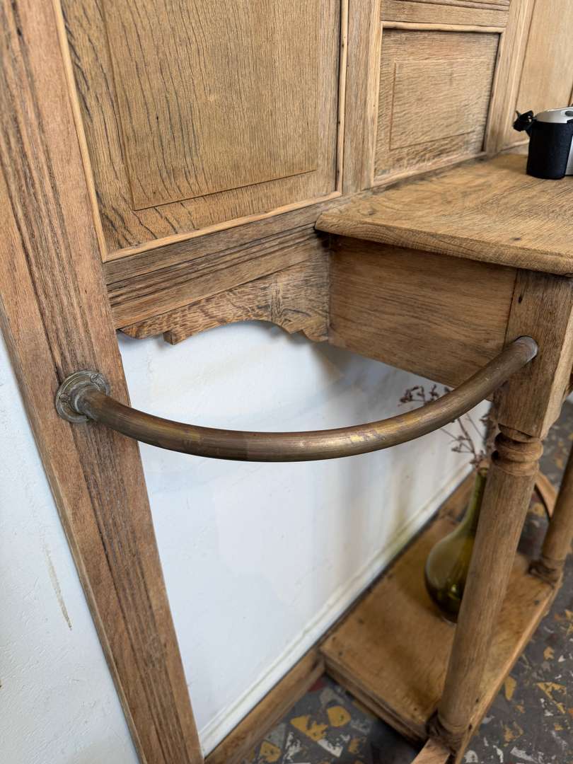 Vestiaire d’entrée en chêne — début XXe 550 € Ajouter au panierAncien vestiaire d’entrée en chêne datant du début du XXe siècle. Miroirs biseautés, barres en laiton et crochets d’origine. Il dispose de 4 patères et d’un petit tiroir central. #vestiaireancien #vestiaireentree #meubledentree #cheneancien #debut20emeDimensionsLargeur104 cmProfondeur27 cmHauteur193 cmRenseignementsRéférence2610004