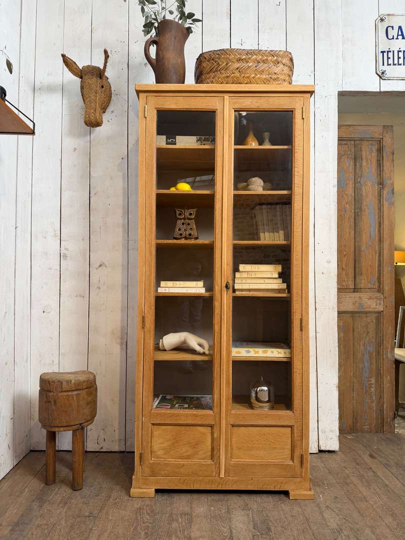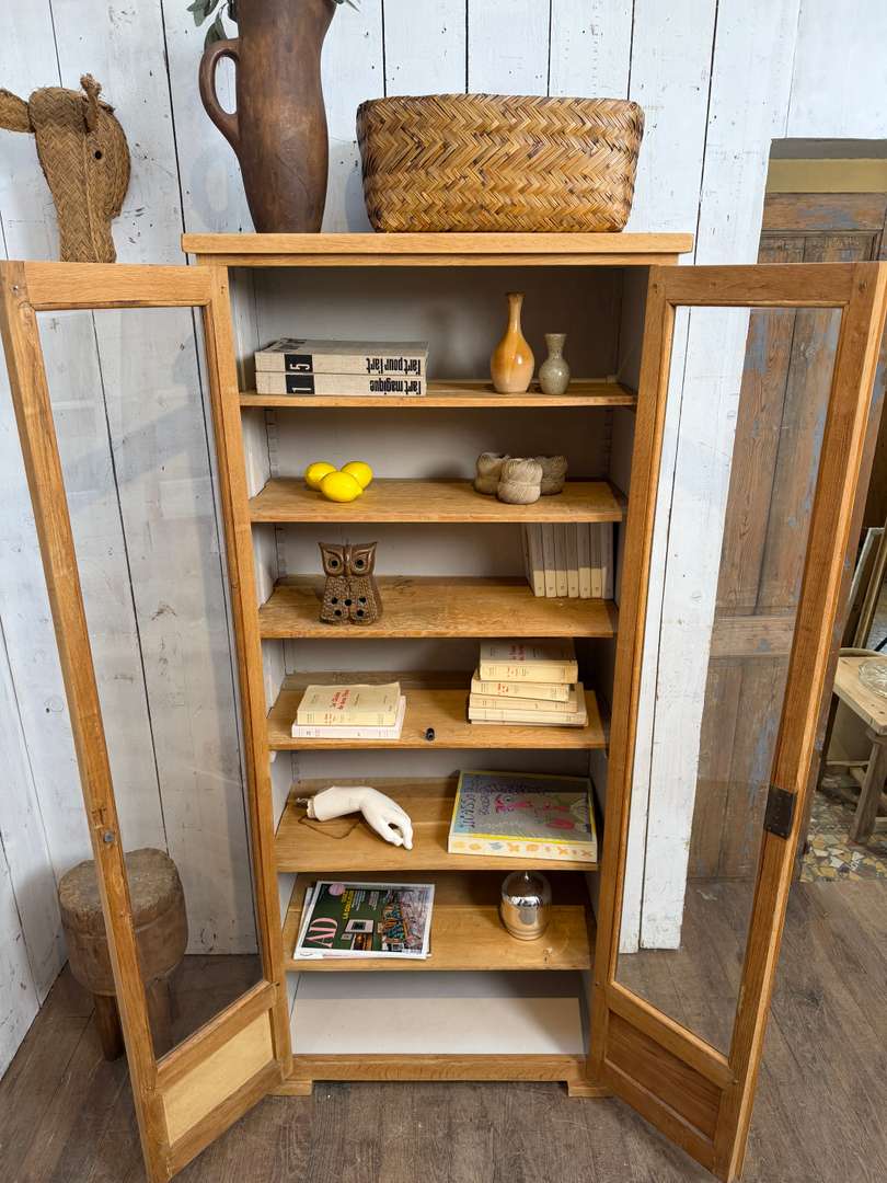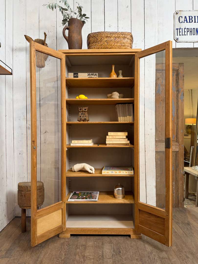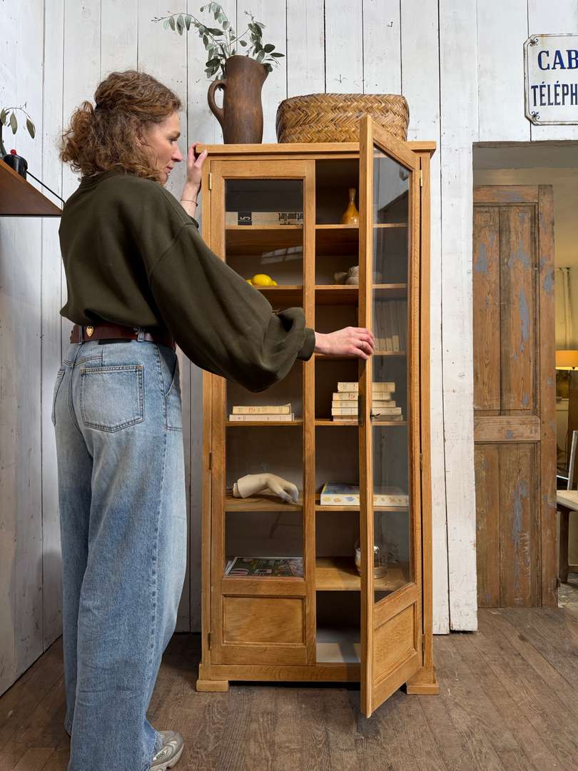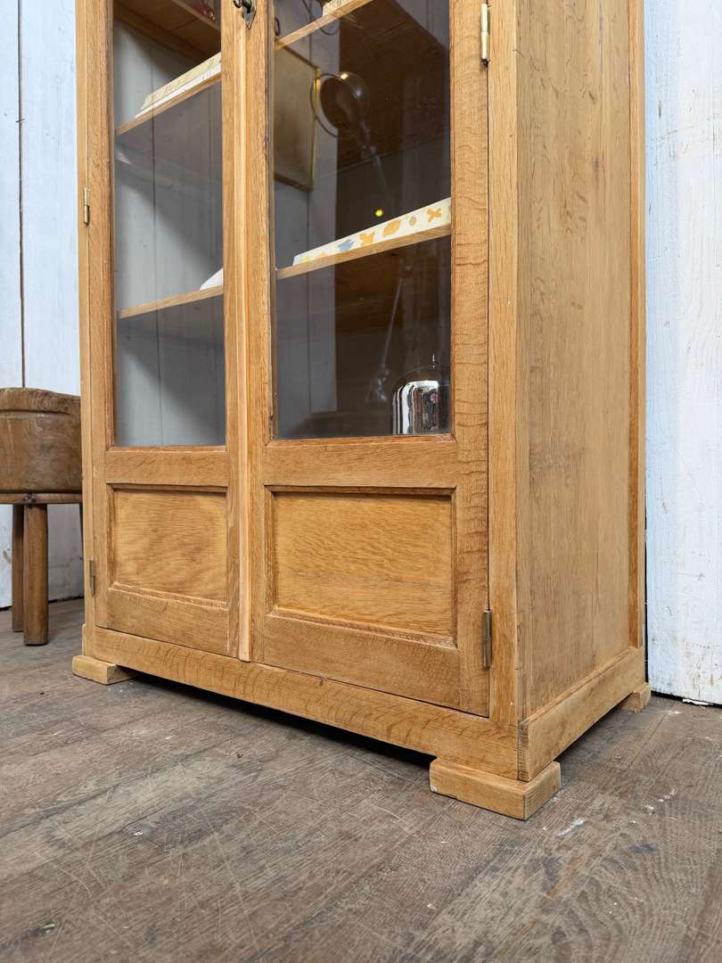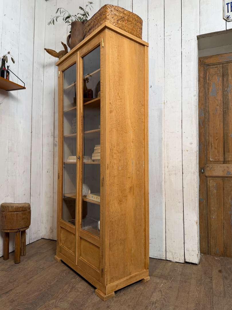 Belle vitrine des années 50 en chêne, aux lignes sobres et élégantes.